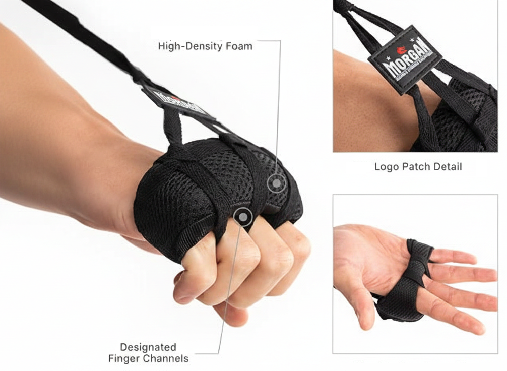 Train harder and strike with confidence using the Morgan Knuckle Guard & 3m Hand Wraps Set. Designed for fighters who demand protection without sacrificing performance, this combination delivers superior knuckle cushioning and reinforced wrist stability for high-impact training sessions. 4cm of high-density foam knuckle guard absorbs shock and reduces impact stress, while the 3m elasticated hand wraps provide secure compression and wrist support. Together, they create a protective system that ensures your punches hit the target — not your hands.Built for boxing, Muay Thai, MMA and heavy bag work, this pairing offers comfort, durability and essential protection for every level of athlete.